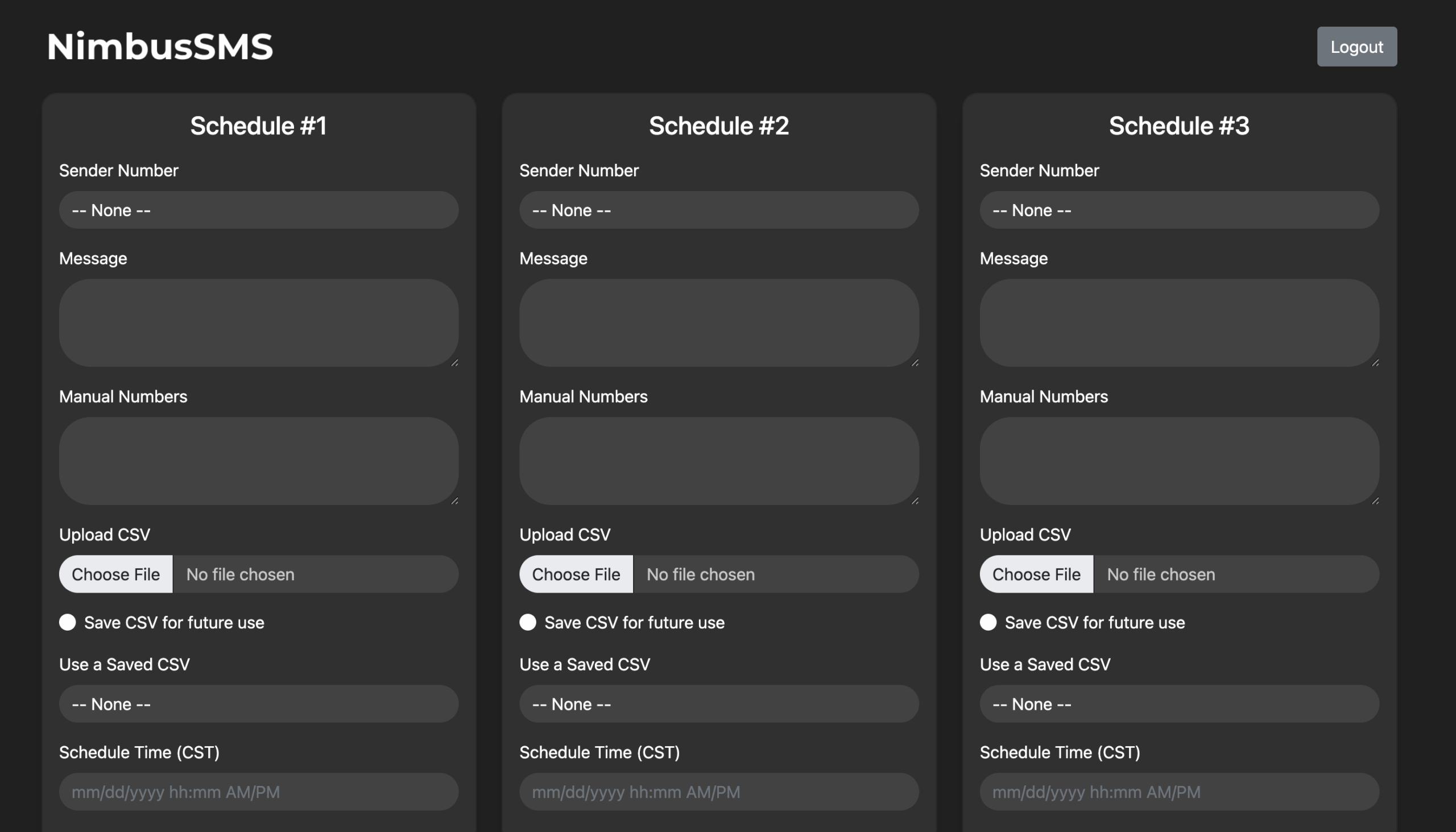 The platform is exactly what we needed. I can upload my contacts, schedule texts, and use multiple numbers across providers — all in minutes. It’s clean, reliable, and way more flexible than anything we used before. This has completely changed how we run our daily updates.”